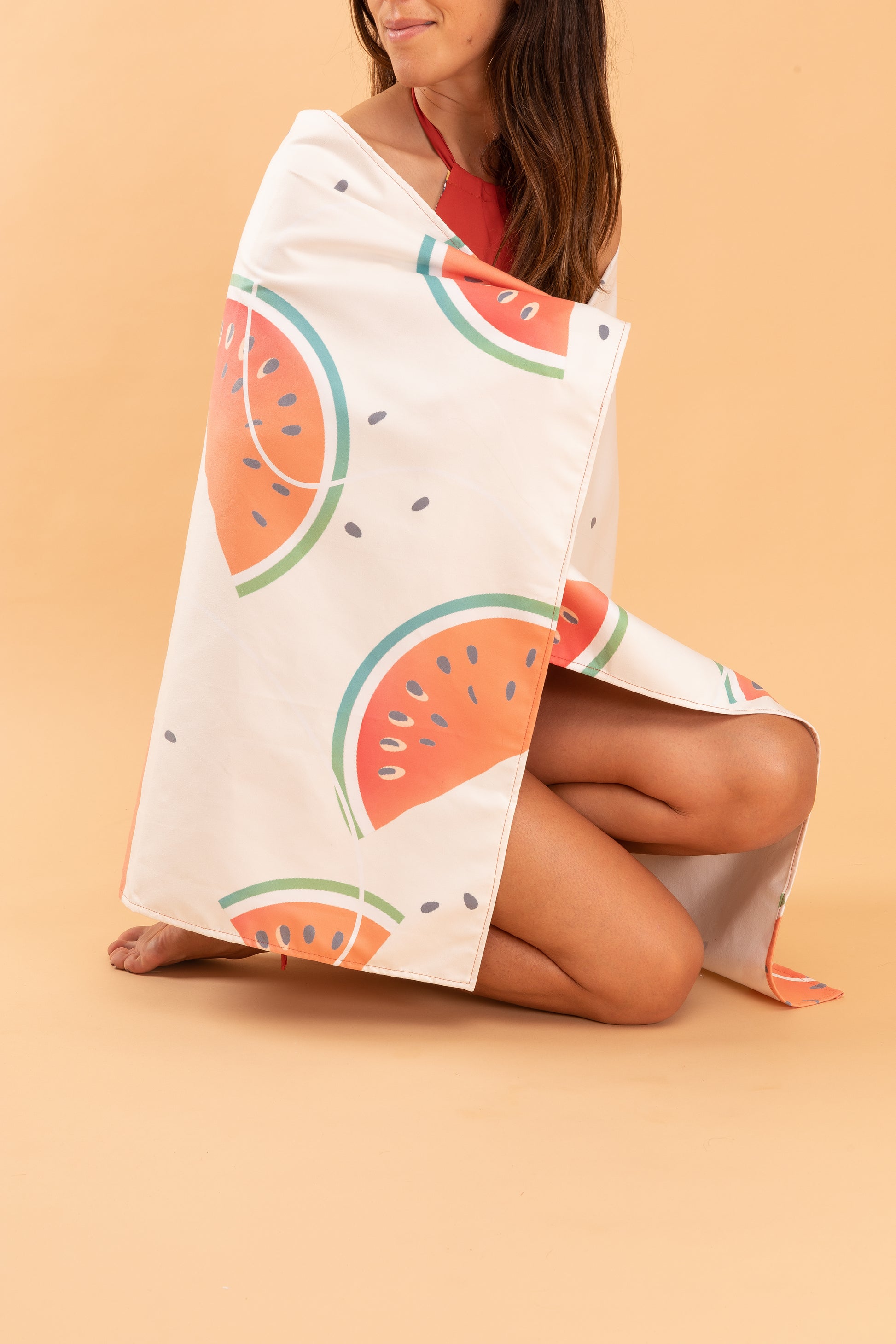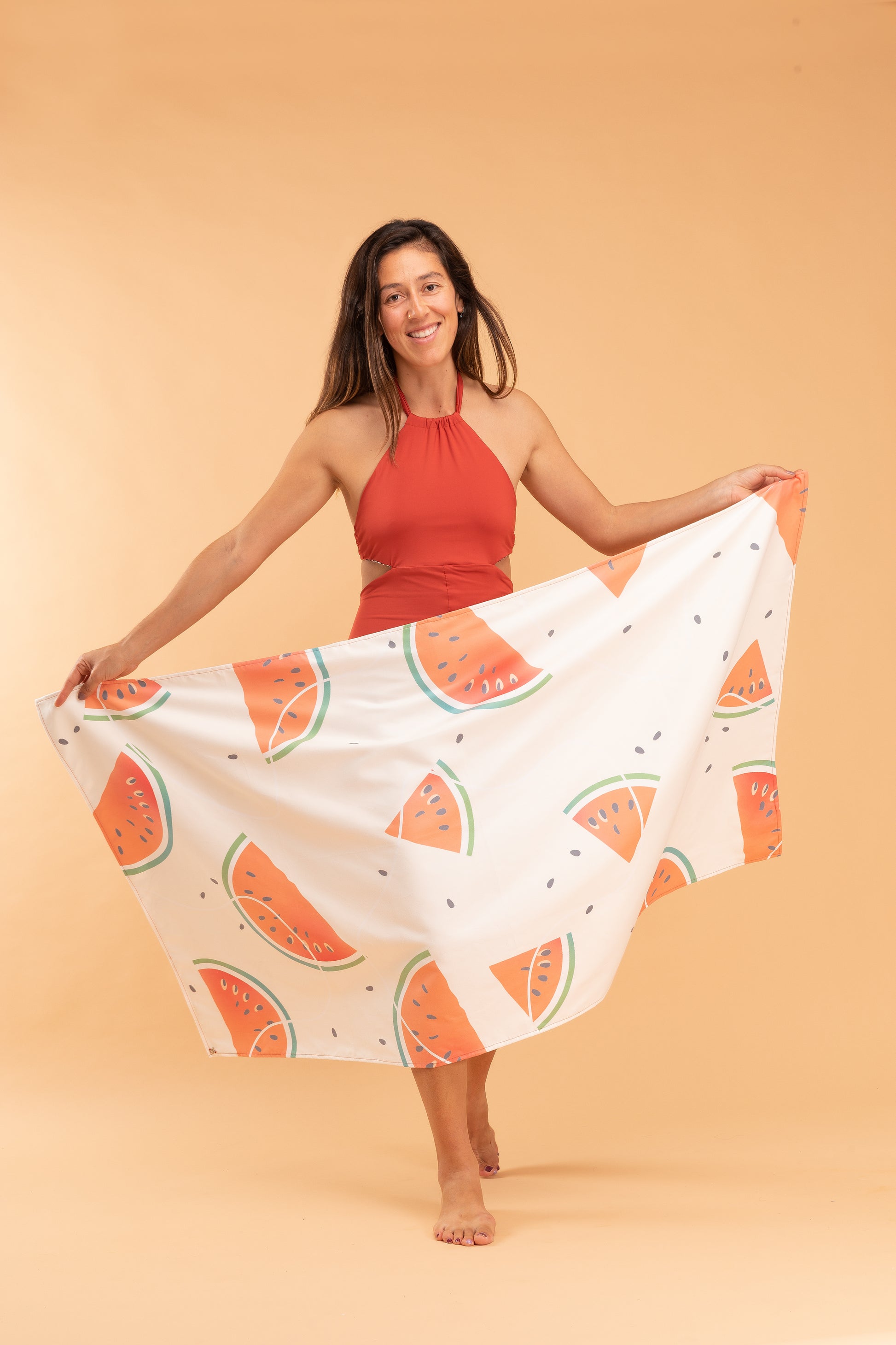 Toalla de 145x80cm hecha en tela de microfibra reciclada de alta calidad. Ideal para la playa, la piscina o hacer deporte. Super liviana (240g) y compacta para llevarla a todos lados.